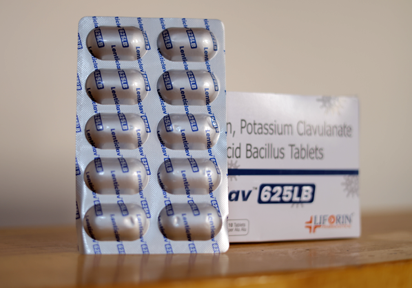 Amoxycillin Trihydrate 500mg + Potassium Clavulanate 125mg + Lactic Acid Bacillus 60 million spores TABLETS